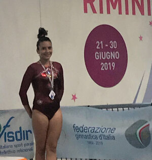 Ai campionati italiani di Rimini 2019 il Team Anni Verdi vola in alto con Lucia De Salvo, seconda al volteggio, terza alla trave e quarta di pochissimo al corpo libero.