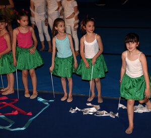 o l’impiego non convenzionale di attrezzi usuali, ci siamo fatti prestare i piccoli attrezzi dagli altri ambiti della ginnastica e poi, finalmente, ecco il primo corso di ginnastica ritmica, presto duplicato nella sezione di Pometo.